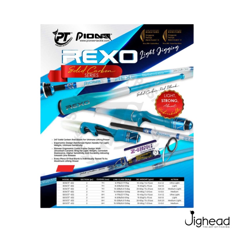 The PioneerRexo BJC632ML is a well-balanced rod for light jigging anglers who want a featherlight, responsive setup without breaking the bank. The combination of a 24T carbon blank, ceramic guides, and an ergonomic handle makes it perfect for targeting inshore species or lighter offshore jigging. Let me know if you’d like guidance on suitable reels or matching lures!