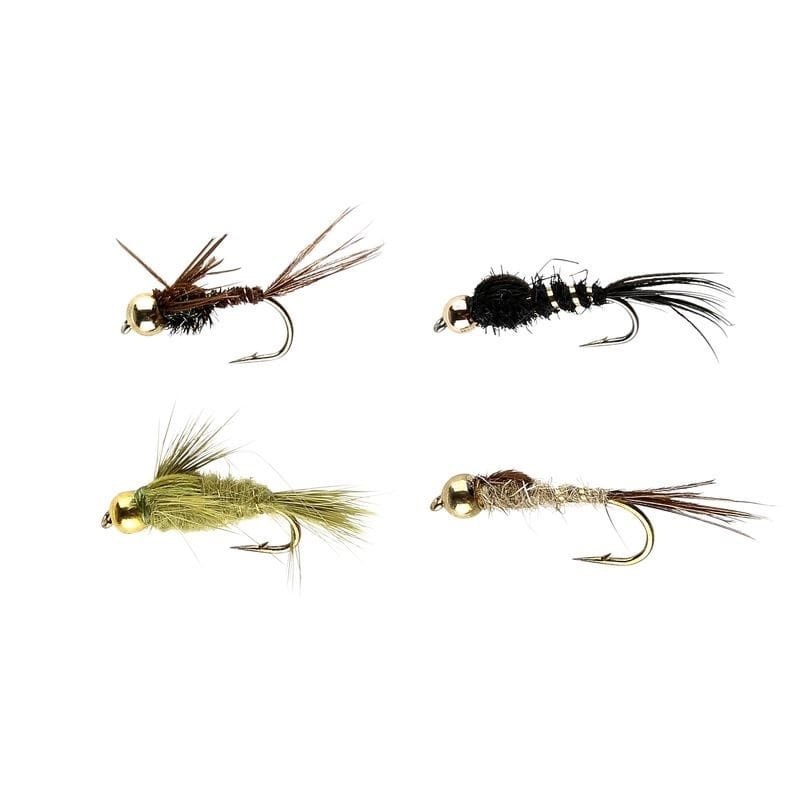 Pool 12 fluesett med BH-fluer 4-pakning. Fire varianter av vektede nymfer. Gode fluer nr fisken spiser under overflaten.Dette er en av Pool 12 sine fluesett som inneholder noen av de mest kjente og effektive mnstrene for bde ferskvannsfiske og sjfiske. Fire gode fluer med hver sin historie.