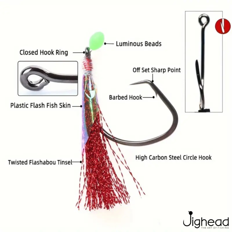 • Color: Lt Rose, Yellow, Red Rig Hook: High Carbon Steel Hook, #4/0-#8/0 Circle Hook, Black Nickel Color Finished