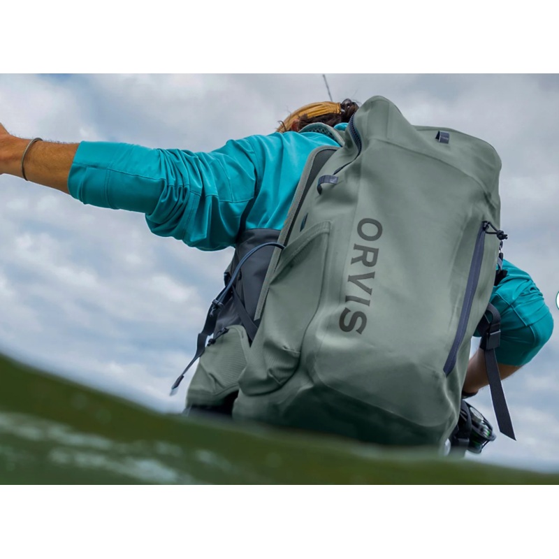 Our durable PRO Waterproof Backpack 30L, is constructed from 840-denier, abrasion- and puncture-resistant ballistic nylon, and then coated with .1mm TPU on both sides of the fabric. Weve yet to see a more waterproof and thoroughly seam-sealed pack collection on the planet. Thirty waterproof liters of storage give you ample day pack capability and then some. With a slightly longer back panel, weve even rethought the way a pack capable of holding so much gear sits on your hips, yet wears like its hardly even behind you. Our answer came in the form of a wider lumbar strap/buckle with larger, pocketed wings. Both fit and feel just right without constricting movement. Also note the beefy, submersible, easy-slide, #10 TIZIP MasterSeal zipper, as that ones critical. With actual teeth that grab and seal, it prevents the dreaded blowout that plagues packs with a sandwich bag-style closure. Gear stays bone dry and access is easy thanks to a generous opening with an interior weve brightened up by adding a high-vis chartreuse color. Weve also redesigned the shoulder straps and back panel with perforated 10mm foam padding, decreasing weight and bulk while allowing for better air circulation. In short, the days of the dreaded misty back are over. Deep dive into further features and youll find an integrated back panel net scabbard and exterior D-ring, rod-tube cam straps, water bottle pocket with retention leash, and internal hanging pockets to keep gear organized. The shoulder straps even give you accessory docking stations and a unique buckle that lets you customize even more by adding our 4L Chest Pack (25FS) and 3L Chest/Hip Pack (25FT), making the PRO Waterproof Backpack the day pack to end all day packs.Weight 1361g/3lbs.