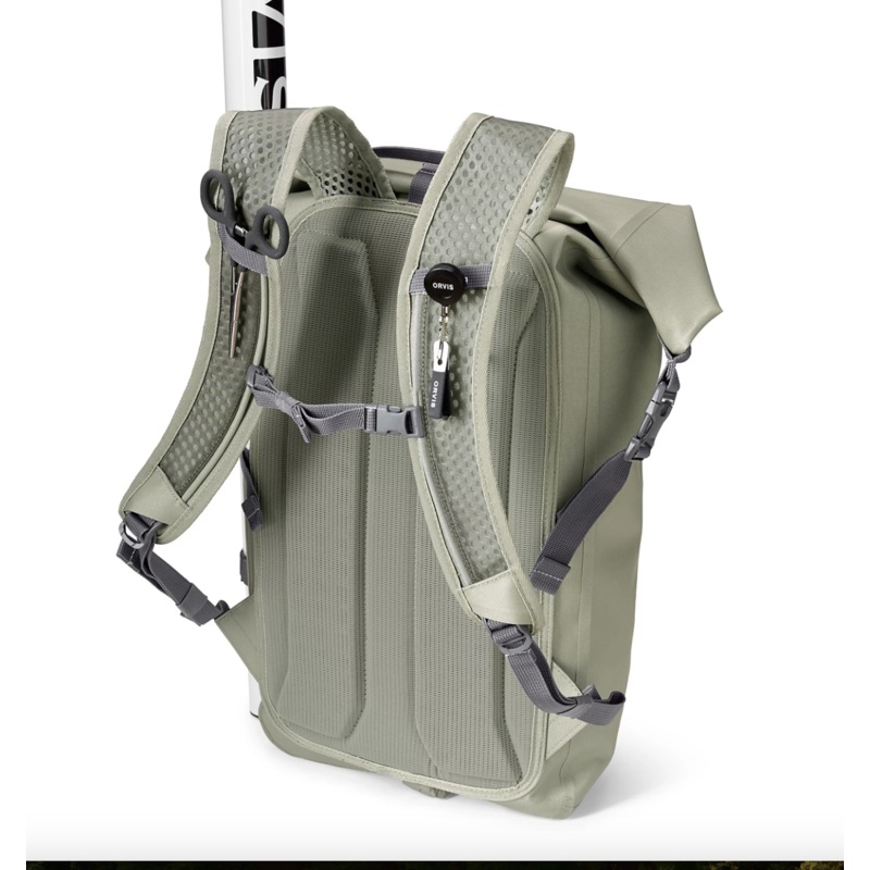 Our PRO Waterproof Roll Top Backpack 20L is constructed from 840-denier, abrasion- and puncture-resistant ballistic nylon, and then coated with .1mm TPU on both sides of the fabric. If theres a more waterproof and more thoroughly seam-sealed pack collection on the planet, weve yet to see it. Twenty liters of storage give you ample protected space in this Roll Top for fishing gear, a jacket, and a PB&J sando or three, now in a stripped-down version that does away with all unnecessary weight for those who require waterproof storage on the move. Gear stays bone dry and access is easy thanks to a generous opening with an interior weve brightened up by adding a high-vis chartreuse color. A three-way top closure gives you compression options and allows you to scale the pack up or down based on the volume of gear inside. Minimalists and those who fish from small inflatables, this Roll Top is your daily driver, made even lighter with the addition of accessory docking zones on the breathable mesh shoulder straps that fit comfortably without soaking up water and weight.Weight 898g/1.98lbs.