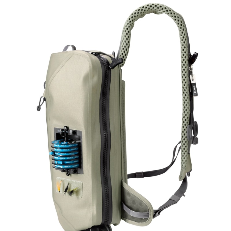 Constructed from 840-denier, abrasion- and puncture-resistant ballistic nylon and then coated with .1mm TPU on both sides of the fabric, the PRO Waterproof Sling 14L fishing bag is at the top of its class. At 14L of storage space capacity-wise, our PRO Waterproof Sling hits a sweet spot between our Guide Sling and standard Sling Pack with added protection from the elements. The intuitive product design puts your fishing tools and accessories exactly where you expect them to be. Naturally, the pack includes the wildly popular, patented, easy-access Tippet Whippet docking station, now welded onto the fabric instead of sewn in so theres no possibility of water leakage. Also note the beefy, submersible, easy-slide, #10 TIZIP MasterSeal zipper, as that ones critical. With actual teeth that grab and seal, it prevents the dreaded blowout that plagues packs with a sandwich bag-style closure. Gear stays bone dry and access is easy thanks to a generous opening with an interior weve brightened up by adding a high-vis chartreuse color. Weve also redesigned the shoulder strap and back panel with perforated 10mm foam padding, decreasing weight and bulk while allowing for better air circulation. In short, the days of the dreaded misty back are over. Deep dive into further features and youll find an integrated back panel net scabbard and exterior D-ring, a second, water-resistant accessory pocket with YKK AquaGuard zipper, water bottle pocket with retention leash, and internal hanging pockets to keep gear organized. The shoulder straps even give you accessory docking stations in a dialed-up sling pack perfect for wet, nasty conditions.Weight 748g/1.65lbs.