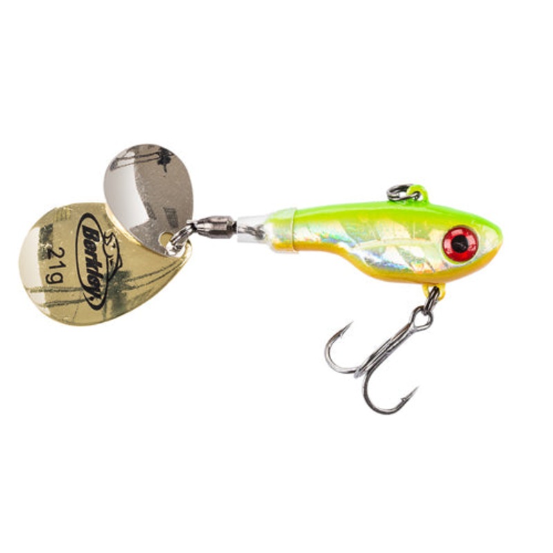 Den stora skeden skickar ut lockande signaler till fiskarna medan den lilla gr att hela betet vibrerar och vickar vilket gr det till ett ruggigt effektivt abborrbete. Trekroken r Berkleys egna supervassa Fusion19.