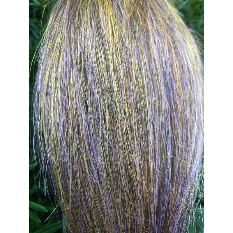 5″-7″ Tapered synthetic hair Color:Rainbow Olive Green and True Olive with Purple and Black Highlights