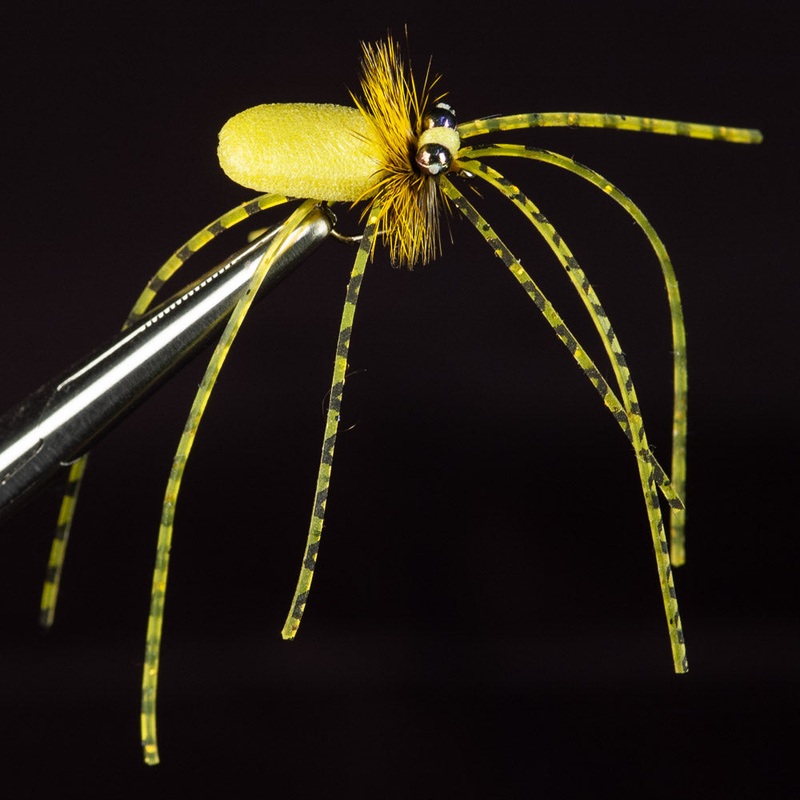 Looking for the perfect bite-sized topwater offering for bluegill and other panfish? Try the Spidey Sense from Rainy’s in either yellow or tan and you’re sure to strike their fancy. A soft foam body and long, lifelike legs will surely get the fish’s attention. These flies are perfect for working lily pads, cattail edges, brushy shorelines, or downed trees. A slight wiggle of the rod tip will cause the supple legs to shimmy in the water just like a spider that was unlucky enough to fall to the water’s surface.