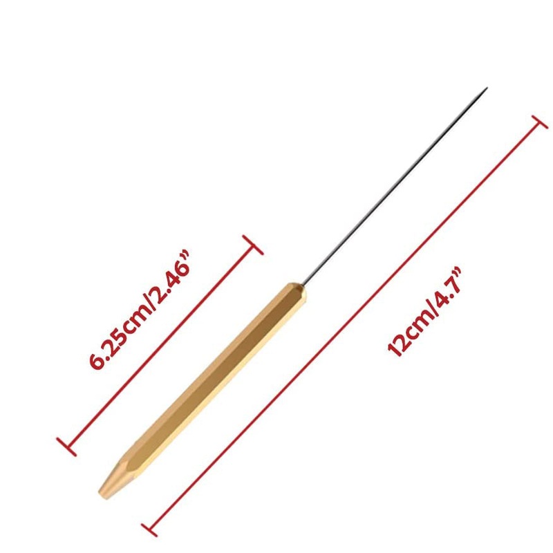 Creat a Half Hitch Knot Easily: It have a half hitch tool on the other side of little needle points, a hollowed out little hole. Take your thread wrap around the back of bodkin and then you slide this off and slide over the eye of hook.