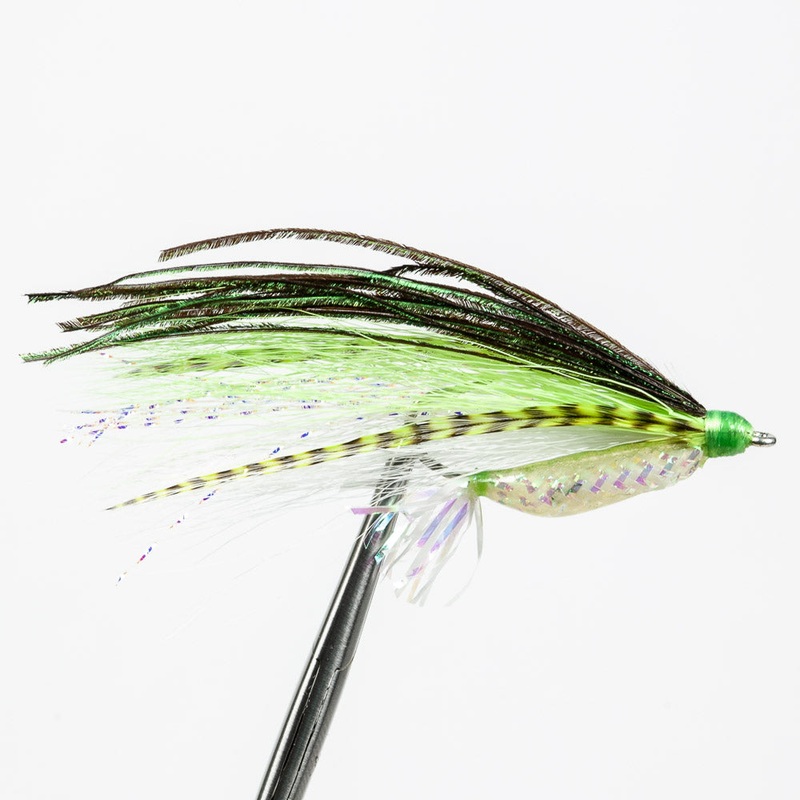 This fly is a rattling version of the bendback. It works very well in off-color water, in low-light conditions and also on thick grass flats. The rattle can help a redfish with its head buried in the grass locate a fly that would otherwise be overlooked.