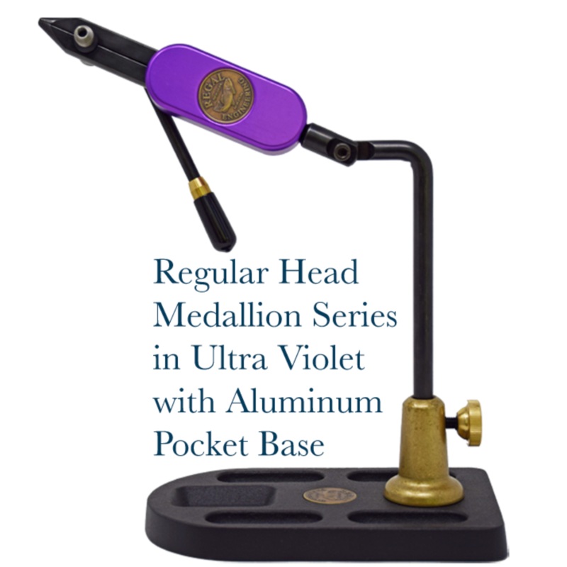 Meet the Regals flagship series the Medallion. This iconic and often imitated design is the pinnacle of vise technology. Open the jaws, insert your hook, and start tying. There is nothing to adjust, even when you switch from a tiny midge to a huge streamer hook. All Medallion Series vises revolve around a 360 axis and articulate 220 up and down.