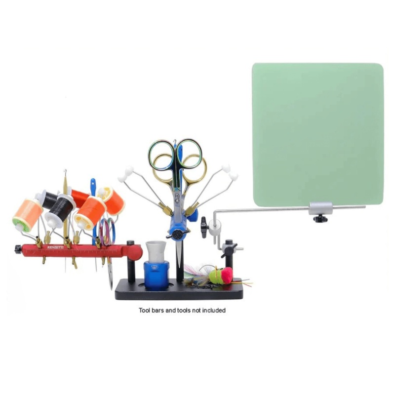 The Tool Bar Stationis perfect tool organizer that can be placed anywhere on your desk. It comes with a4″ stem and 2 stems at 2″.stems, a 3″x6″ black powder coated base and multi use magnetized pockets to hold your hooks, eyes, beads or any other tool or supply. This Tool Bar Station willhold any Tool Bar as well as The Renzetti Enhancement Plate allowing you to have your vise free of any attachment, giving you more space around your vise, but still have your tools close by.