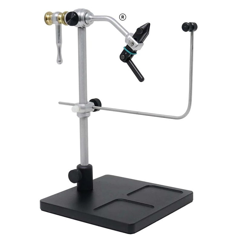 Standard features for the Traveler Series Vises are an adjustable bobbin cradle, case hardened cam jaws, a rotary tension screw, and black powder coated base with a 7″ stem or a black powder coated c-clamp with an 8″ stem.