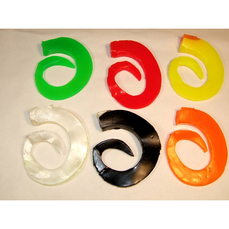 The Regular Super D swimbait is a 100% soft plastic lure and come in two weights, a 5oz and a shallow 4oz weight. These lures use a tough BODY LOCK harness that will keep the body on during rough use. It is balanced with a jig head so it glides at a gentle 20 degree angle on the fall and swims horizontally when reeled in. The Regular Super D musky swimbait can be used as a crankbait, jerkbait or jig. When retrieved, it rocks back and forth as the curly tail waves frantically, a combination that drives large freshwater game fish crazy. Fish the Regular Super D swimbait with a slow, medium or fast retrieve while twitching and jerking over weeds, on weed edges and on or around structure. The Regular SuperD musky swimbait is 5 oz. or shallow 4oz. and comes with a hand cut tail (14 inches with the tail out!). Also comes with taxidermic quality eyes. The Regular 5oz SuperD swimbait can be counted down at about 1 foot per second allowing you to put the bait in the fishes face at any depth. The 4oz counts down at about 8 per second. These are hand poured and come in 42 muskie fish catching colors, 3D eyes, fins, gill plate, scales, softer plastic for an even more realistic realfish movement. Our musky lure innovations are your key to success. Quality musky swimbaits made by the Tackle Industries company and not overpriced! This ultra tough swimbait can also be used for taking BIG trophy bass!