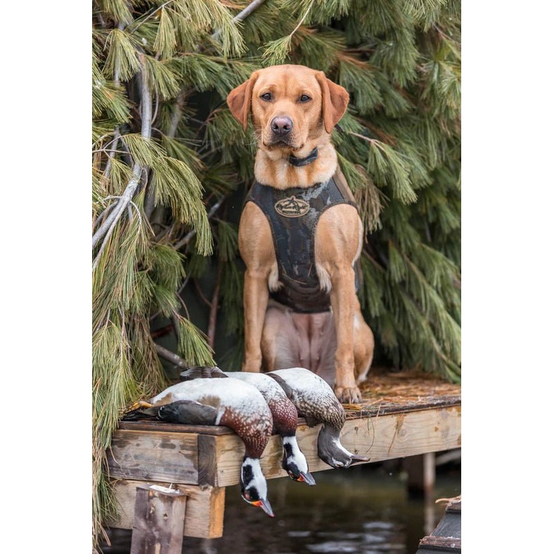 The Bloodline Elite Dog Vest from Rig’Em Right Waterfowl offers the utmost protection for your most reliable hunting partner. The unique 3-layer construction of the upper material consists of 3mm neoprene gives a next to “skin” for warmth and comfort. A thin layer of foam for added flotation, and an outer layer of heavy-duty canvas for protection from brush and briers. Also features 5mm neoprene throughout the chest for flexibility and warmth and a sturdy braided handle to help you buddy back in the blind. This vest has a more athletic cut around the neck and between the front legs to provide better mobility without rubbing and bunching. Heavy duty zipper with velcro closure over zipper.