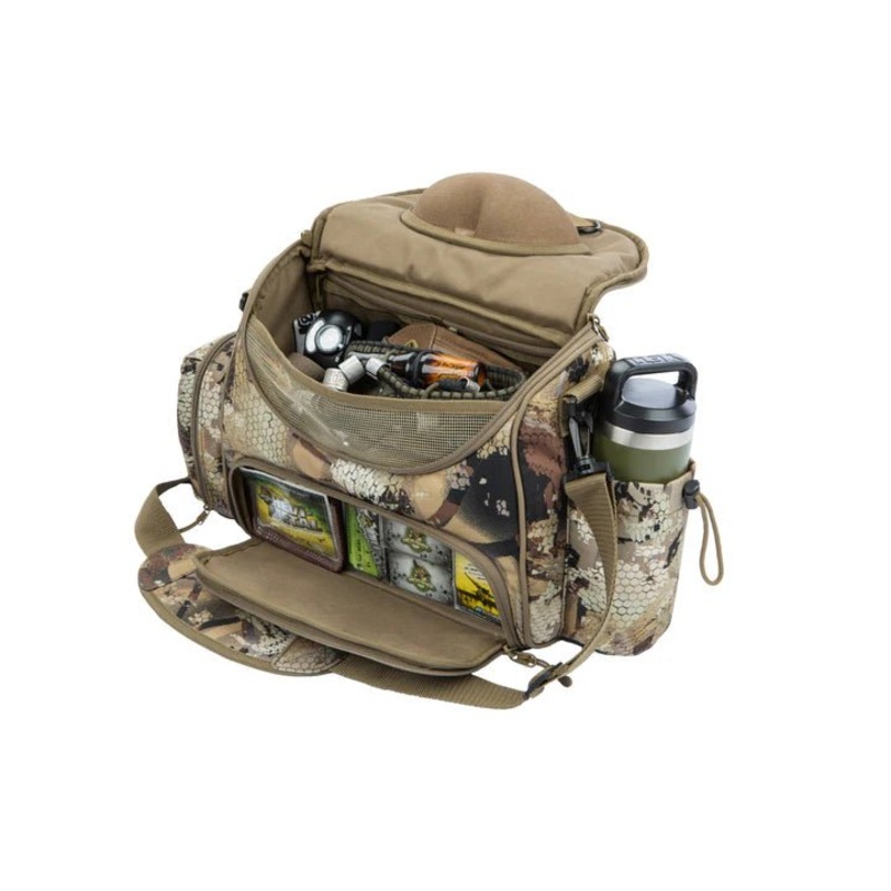 If youve wanted a compact, guide-style blind bag that didnt compromise features and quality, then this is the bag for you. The Lock and Load Blind Bag is not only tough and durable, but has all the important design elements youve come to expect from RigEm Right. This bag features separate molded ammo compartment with hard bottom, molded sunglasses case, drink holder pocket, clear internal pockets and a separated main compartment for your essentials. Additionally the narrow profile makes it ideal to fit inside a layout blind and features clips to attach to stubble straps on the outside of your blind if desired. Also, has a metal hook to attach to a nail in the blind or on a hook in the timber. All-in-All, this is the ultimate compact blind bag. GORE OPTIFADE Marsh