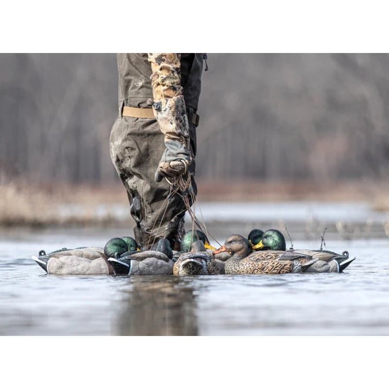 1 dozen or 1/2 dozen pre-rigged Xtreme Coated Cable decoy anchors with weights and large padded carabiner clip.