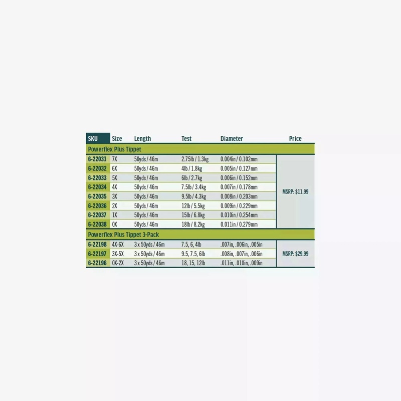 RIO’S Powerflex Plus Tippet is the strongest nylon tippet material ever made, with tensile strengths up to 20% more than regular tippet. A highly technical formulation of the nylon copolymer manufacturing process has resulted in this prodigious strength increase, without compromising knot strength or suppleness. Simply put, this is the strongest, most reliable tippet ever made.