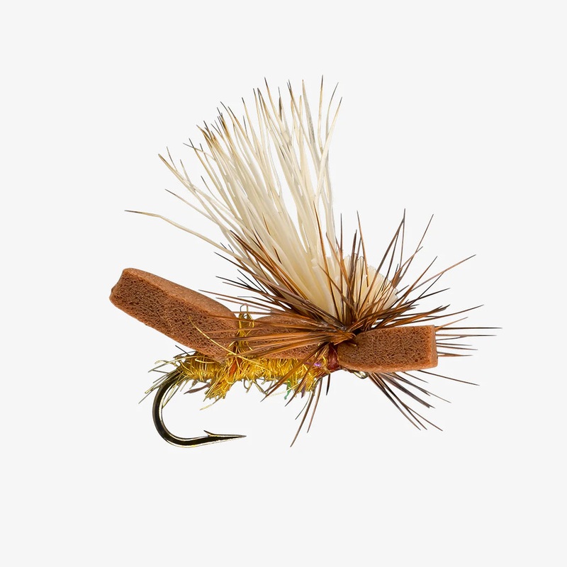 We’ve combined a couple of our favorite flies (Chubby Chernobyl and Tilt Wing Dun) into one. The proven colors, and tapered foam deck pair well with the natural wing and hackles. The bleached elk wing is easy for anglers to see in most light, and the hackle fibers serve as legs and antennae that look like they are swimming and moving. This pattern is super versatile and represents many types of summer/fall insects. Hoppers, Yellow Sallies, Drakes, and Caddis. It also has many attractor colors to search with. As fish get weary of the bigger flies, this becomes a great pattern to transition into.