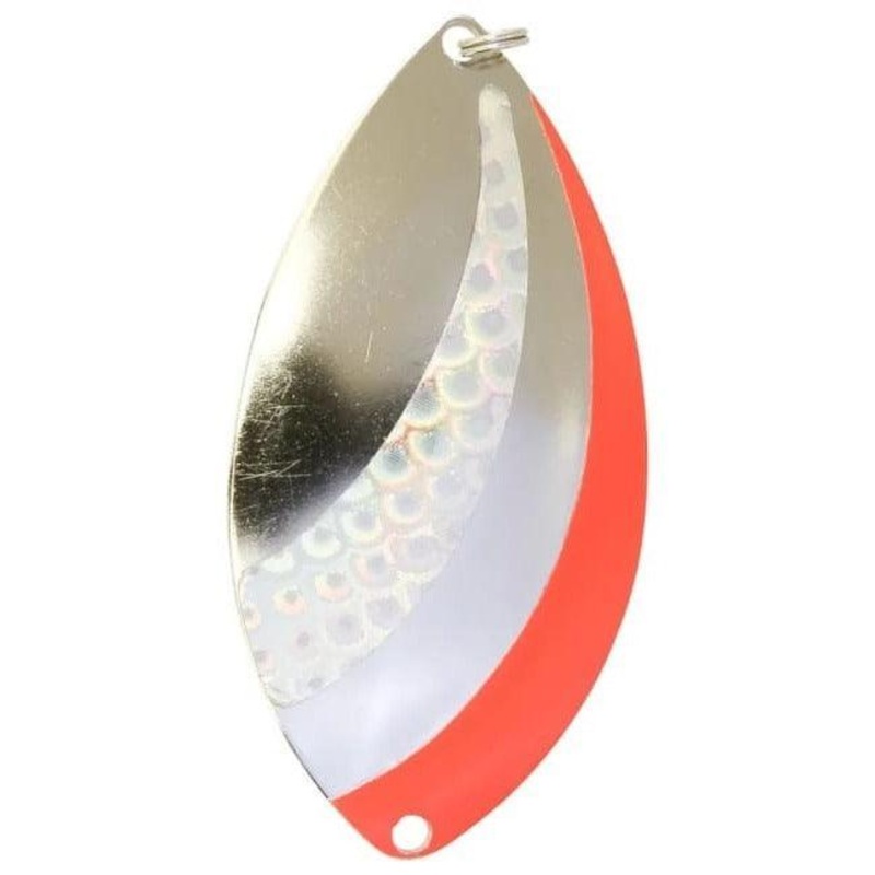 Blinken har en klassisk form, kommer i tre forskjellige strrelser (58, 70 og 100 mm).P baksiden er blinkene dekorert i ryas gytefarger, noe som erfaringsmessig trigger fisken til hugg.