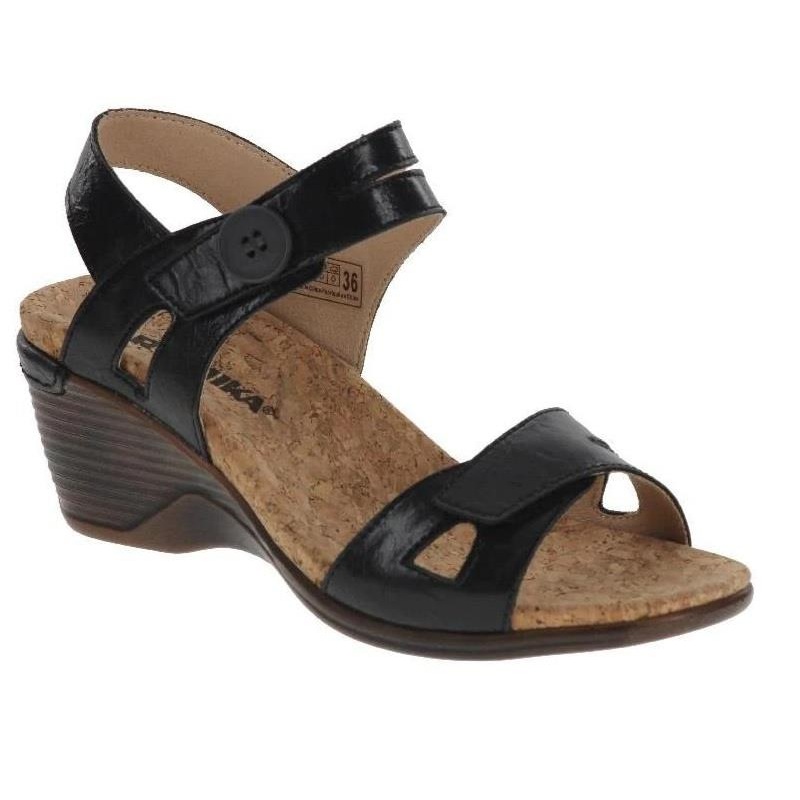 These women’s sandals from Romika are so pretty and comfortable. The Wedge sole is full in the arch, providing the maximum support. Easy to put on, they are stylish and fit well with the Velcro straps on the top. The insole with the micro cork finish is non-sticky underfoot, for maximum comfort. Made with materials without animal products, they will delight vegans.
