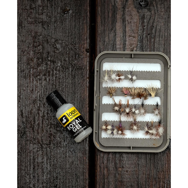 A gel floatant that adds a little shimmer to flies. It is silicone based and wont leave any slick on the surface, while adding an iridescent reflection that mimics clear wings.