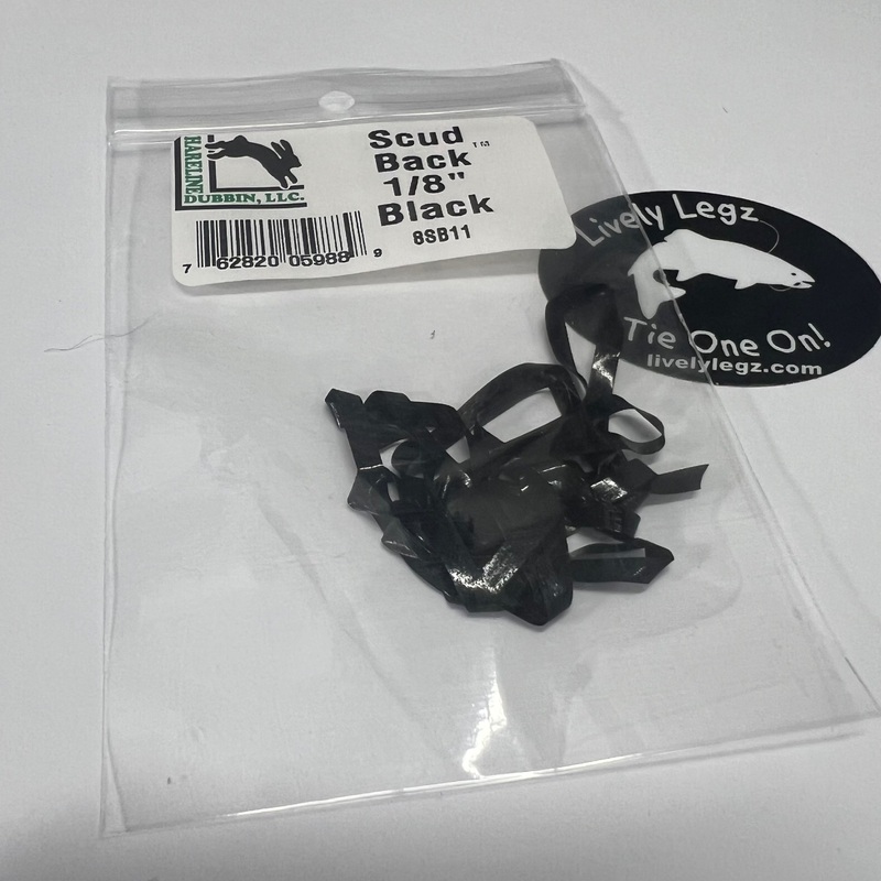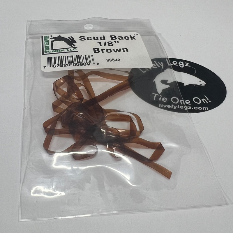 This stretchable transparent fly-tying material for use on scud backs, wing cases, nymph bodies, shrimp and crayfish shell bodies, etc. Wide material is 1/4 in. wide, narrow is 1/8 in. wide. 1 yard length in a package.