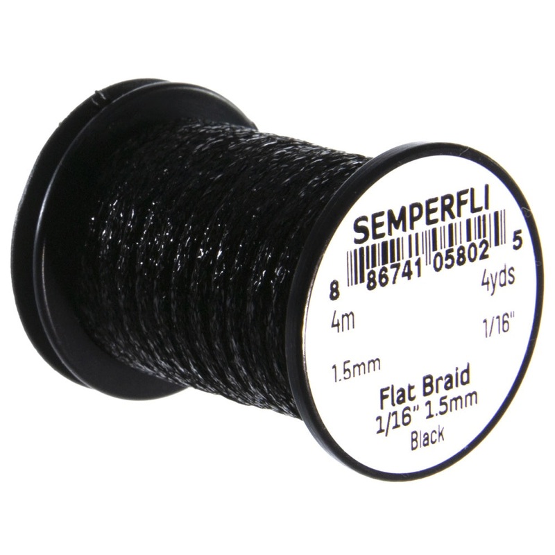 Flat-Braid is very thin tightly braided metalloplastic ribbon we have had designed to form very slim bodies. Flat braid gives the opportunity to construct translucent bodies with very fine texture and is very popular as a body material, try ribbing your tubes or Waddingtons or as bodies for your trout and predator lures.