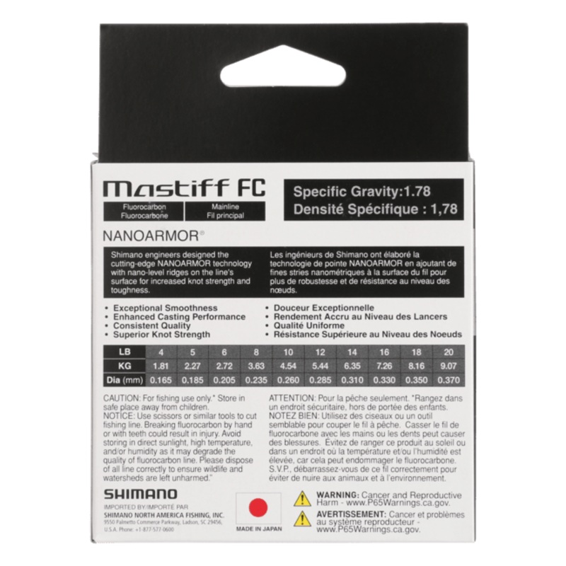 Produced in Japan with strict quality control, Shimano Mastiff FC is 100% fluorocarbon line offering anglers consistency and reliability with strength, durability, and smoothness to enhance performance on the water. But Mastiff’s benefits aren’t limited to increased smoothness and suppleness, the most significant characteristic of Mastiff cannot be seen with the eye. Shimano engineers devised NANOARMOR technology nano-size ridges across the outer surface of the line to enhance knot strength and toughness, preventing slippage and reducing the risk of line breakage. The added knot strength and durability are essential for enduring the repetitive stress when casting, twitching, or jerking large lures. Developed with one goal: Mastiff delivers connected confidence on the water.