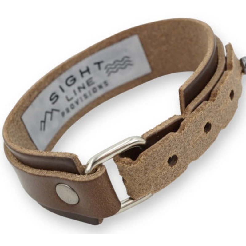 Fishing bracelet with bronze cast textured Permit badge mounted on 1″ leather bracelet. Fastened with just right adjustable sizing closure to size down to 6″ or up to 8″ wrist. Extenders available for larger wrist sizes.