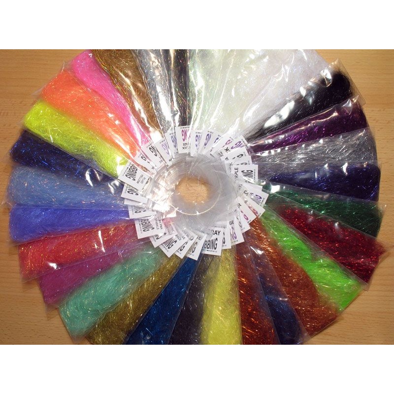 Angelina Hair is a very fine mylar type material. With 6-8 inch strands Angelina Hair can be used for big streamers or cut for dubbing for smaller flies. It will add a little glitter to your old favourites. Tied in baitfish patterns it seems to come alive in the water. Anglelina Hair blends well with most other dubbing materials and it doesn’t absorb water, so large flies don’t get heavier. If you like stuff that sparkles and glitters it just doesn’t get any better than this.