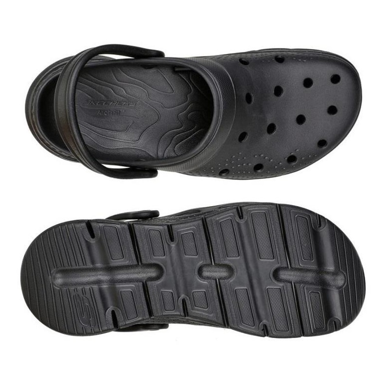 Walk with all-day supportive comfort wearing Skechers Foamies: Arch Fit – Valiant. This perforated sculpted clog features an Arch Fit contoured footbed and a dual-density outsole.