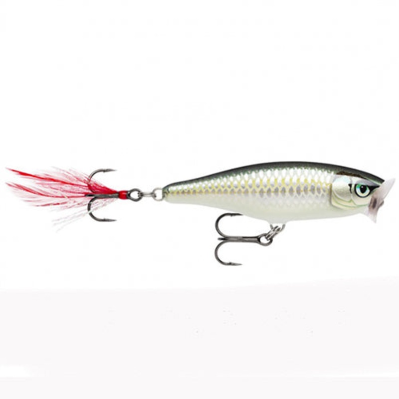 Rapala Skitter Pop r gjord i balsatr och harett hgljutt ploppande som skapas av den kupadeplastskeden. Ljudet frn en Skitter Pop harlockat mnga abborrar att stiga frn djupet ochhugga.