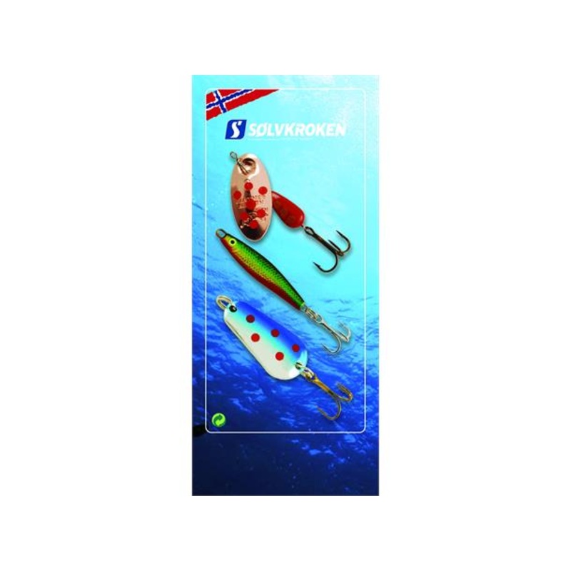 Slvkroken har plukket ut tre av sine beste ferskvannssluker til deg!Settet bestr av Spesial Classic (7 g), Jensen Mini-Pirken (7 g) og Spesial Spinner (6 g). Prv Spesial Classic i klart vr, Spesial Spinner nr det er overskyet. Mini-Pirken har sterke, klare farger, noe som er bra nr fisken beveger seg lite, slik den kan gjre i kalde fjellvann, spesielt tidlig p vren og om hsten.