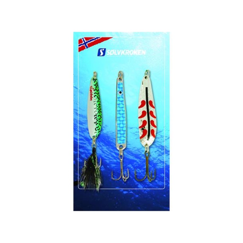 Slvkroken har plukket ut tre av sine beste sjrretsluker til deg! Settet bestr av Morild Seatrout (13 g), Jensen Tobis (12 g) og Salamander Allround (16 g). Fargekombinasjonene er satt sammen for passe de fleste vr- og fiskeforhold.