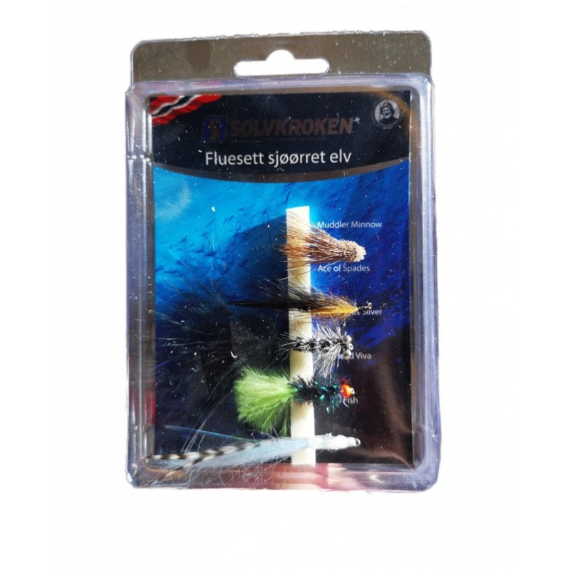 Fluene har vist seg svrt effektive over lang tid og er manges favoritter. Mnstrene dekker forskjellige forhold i elva som vannmengde, farge, temperatur osv. Settet fra slvkroken er tilpasset til fiske etter sjrret og sjrye. 5 kjente klassikere til fiske etter laks og sjrret i elv.