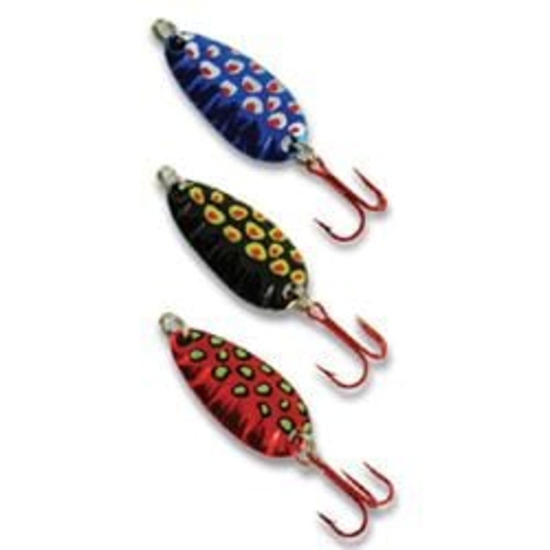 Rd/kobber:Kan vre et lurt valg nr det er overskyet eller regner, samt for grumsete og mrkere vann. Kombinasjonen kan ogs fungere som en irritasjonsfarge, det vil si at fisken ofte hugger p fargen, selv om den ikke er direkte sulten.