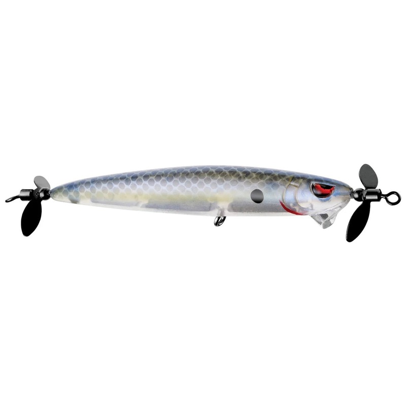 Designed by Elite Series angler, John Crews, the Spro Spin John 80 was built to be the ultimate spybait. Unlike any other spybait, the Spro Spin John 80 features a special chin underneath the bait to increase water resistance, as well as, two swivels incorporated into the line tie and the back hook hanger, which causes the bait rock back and forth and generate a heavy body rolling action. The swivels also eliminate leverage and make it harder for fish to throw the hook to dramatically increase your fishing landing ratio. A pair of counter rotating blades produce a subtle flash and pluming vibration, which is key to triggering lethargic fish into biting as well.