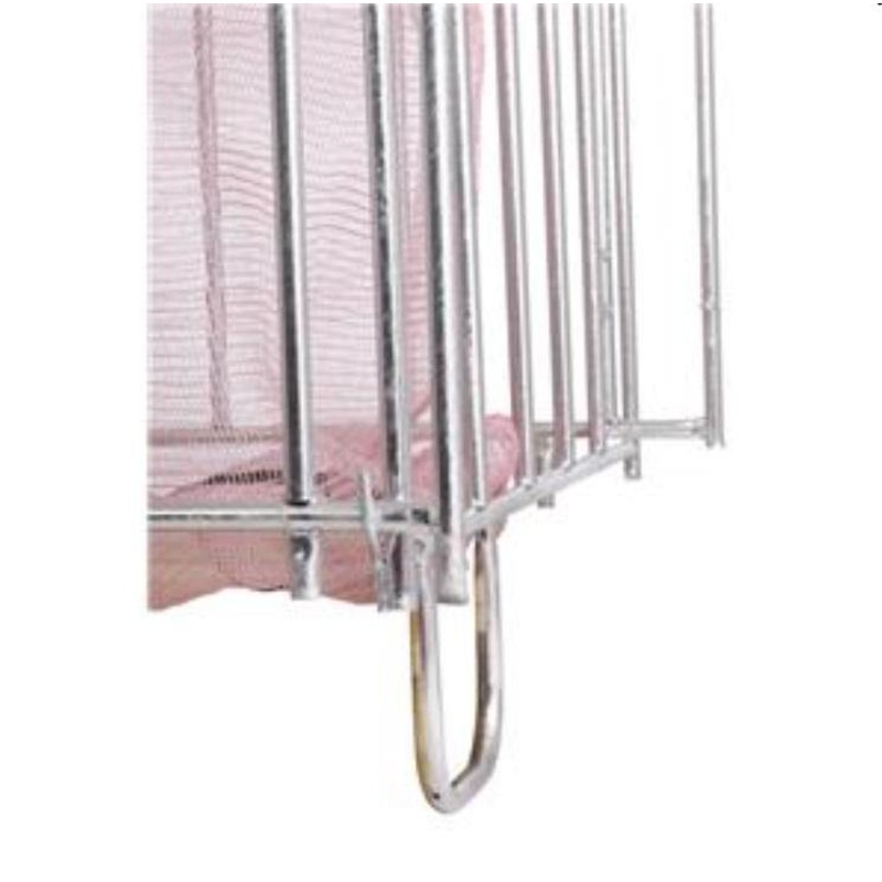 Eurostativ for enkel fylling av Eurosekk. Sammenleggbart vedstativ i galvanisert stl. 3 hengslede vegger og ls frontvegg.