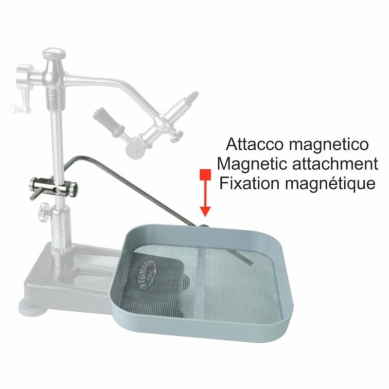 This waste bin comes with an antistatic mesh bottom and can be fully adjusted on the vice stem. It has a magnetic attachment which allows for easy removal. The bin is compact in height and the arm is made of stainless steel. It is suitable for use with vises that have a stem size of 8 to 10 mm.