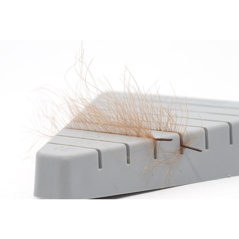 Block with grooves of different length to easily fold the feathers. You just have to insert the quill of the feather inside the groove of the right length. Equipped with three antiskid rubber feet. We suggest to use the CDC Feathers Block in combination with the Hair Clips Stonfo to work more easily on the feathers.