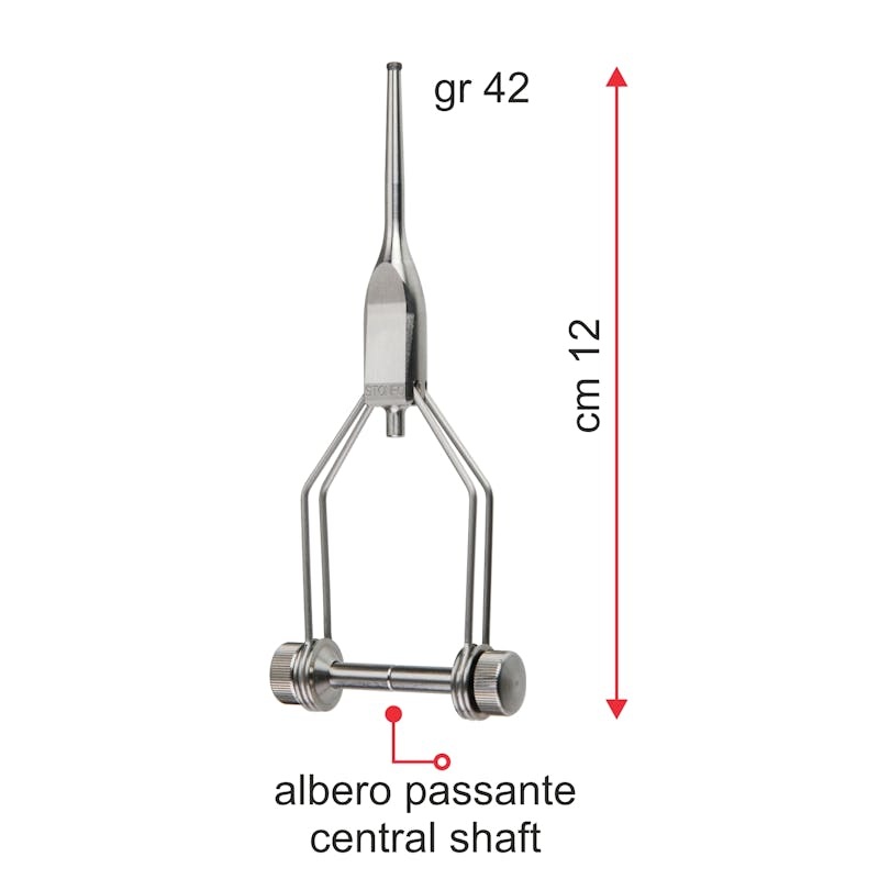 Big size bobbin holder with ergonomic handle specially designed for tying large lures and streamers. Its sturdy structure is made entirely of stainless steel. Its weight of 42 grams helps to maintain a good tension on the tying thread. The central shaft guarantees the maximum stability of the spool, while the two knobs allow the perfect adjustment of the tension. The large tube, with hardened steel bush, allows the use of voluminous materials like floss, microchenille etc. This bobbin holder is perfectly balanced during rotation and is therefore ideal for dubbing.
