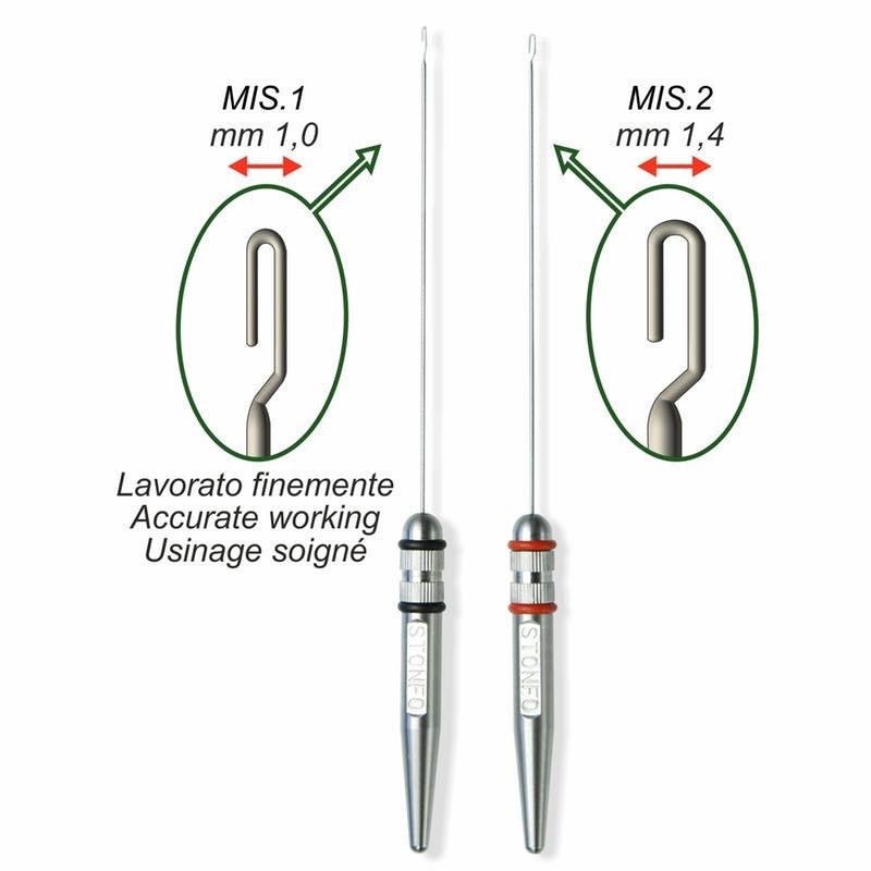 Extra user-friendly tool to thread the bobbin holder. It is produced with stainless steel by high precision machines and is available in 2 different sizes. Size 1 is suitable for bobbins with small tube and size 2 is suitable for bobbins with larger tube for voluminous materials like floss, microchenille, etc.