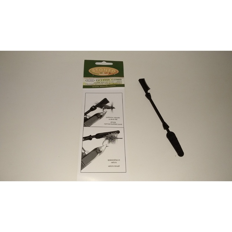 The Pettine Comb realised with high resistance plastic material, is composed of a small narrow-toothed comb and a velcro brush. Ideal to improve the finishing of your lures and to make them more fluffy and attractive.