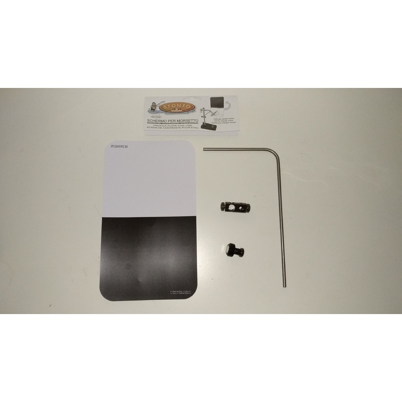 Swivel profile plate for vise. Double colour black and white for your tying needs. Equipped with magnetic rest device that allows the rotation of the plate for a quick colour change. Non reflective surface. Fits on vises with stem 8-10 mm .