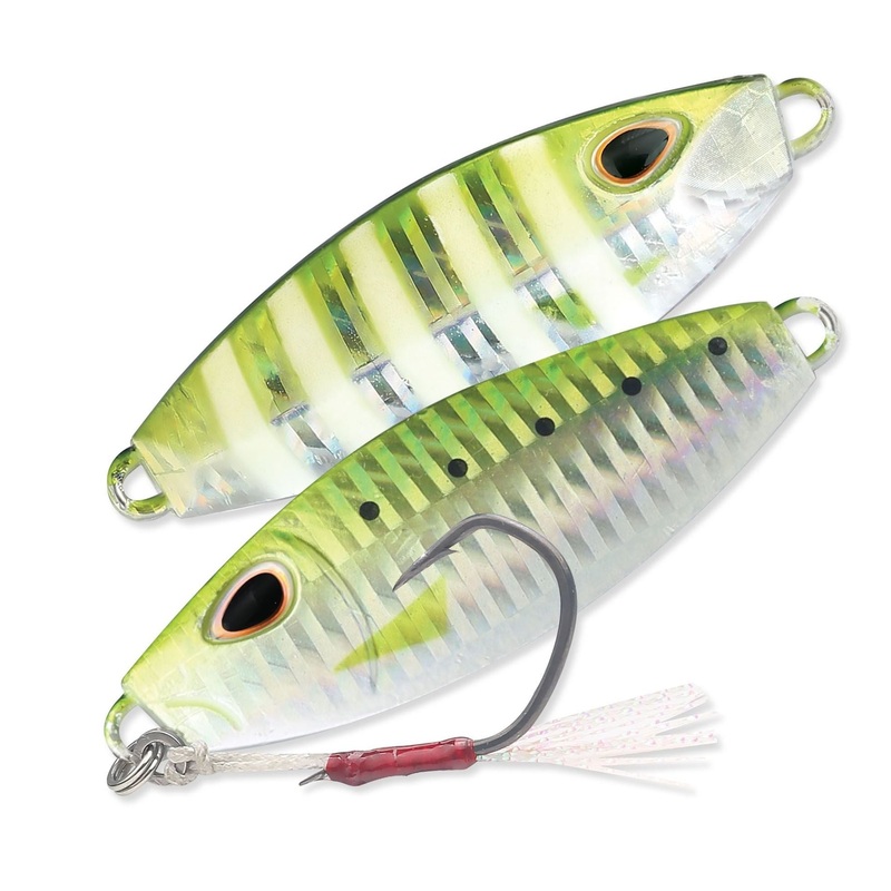 Built with an asymmetrical design, this short profile jig is heavy for its size, packing a lot into a small profile. Featuring an exaggerated fluttering action on the drop, the Slow Rocker is suited to slow-pitch or technical jigging styles.