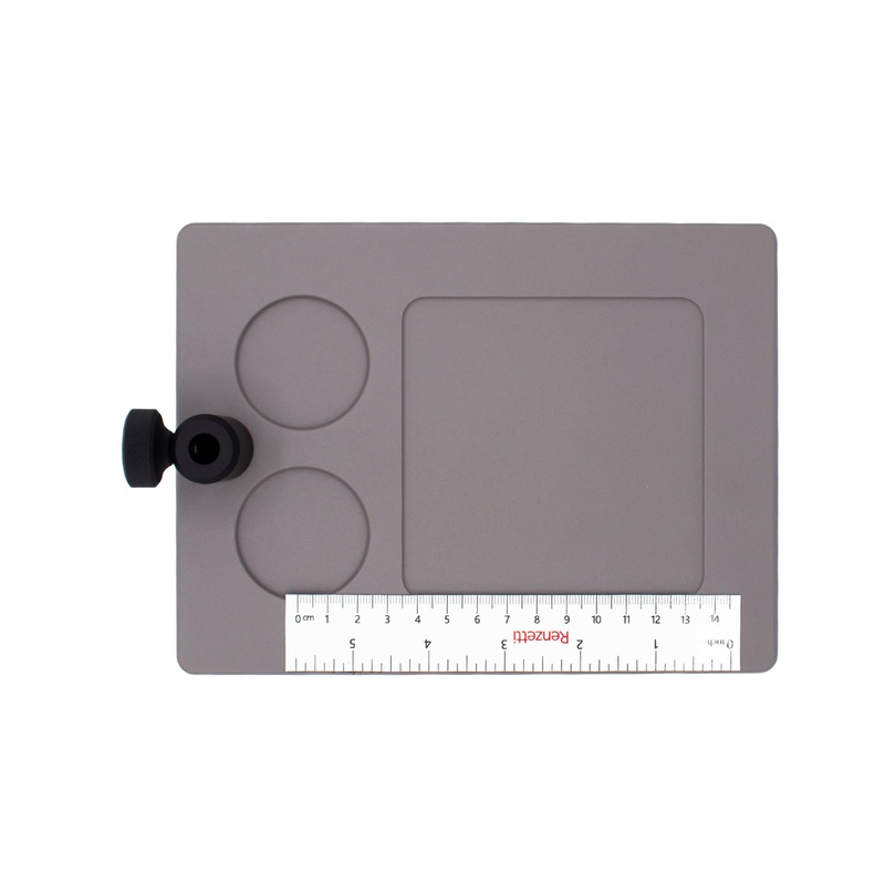 The Renzetti Streamer Pedestal Base comes with 2 magnetized round pockets, ideal to hold hooks, beads or any small piece, a measurement indicator and a large pocket to hold anything you desire. It is such a great accessory it won the Best of Show in the Fly Tying Vise Category at the 2019 IFTD show.