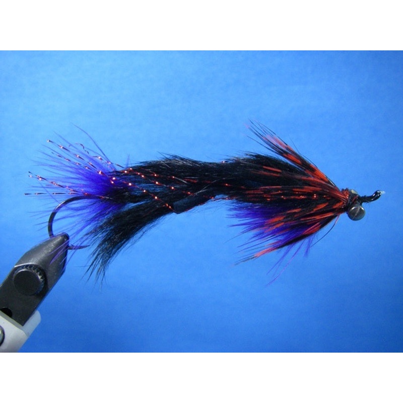 Over the last few winters this creative string leech has been a staple in our rotation. The braid that connects the hook is threaded through the rabbit hide, which allows you to scrunch the rabbit forward, loop the old hook off, loop on a new one and keep fishing! The lead eyes add just the right amount of sink while keeping the fly easy to cast, even on the 5 inchers. Both sizes use a #2 octopus hook.