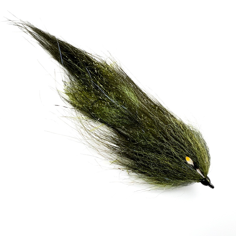 Dumpster dinner is a rather basic profiled articulated streamer entirely constructed out of synthetic fibers. The footprint on this fly is rather suggestive, and is light as a feather but dances and undulates in the water like no other due to it’s primary material being craft fur. At a glance this fly gives the impression that it will turn into a noodle when wet, but a hidden flex resin spreader behind the synthetic head gives the fly enough bulk to dance and move water on the strip. One size fits all. Color combos are in line with some bad food you might find while dumpster diving. If you want the synthetic JC eyes on yours, leave a note in the comments section.