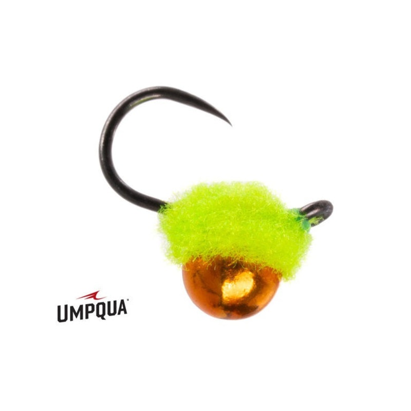 “An idea hit me one night at 2 am while lying in bed, what if I used a jig bomb and found a way to make it round? I immediately got up, went to my tying bench, and the Sunny Side Up was born. The Sunny Side Up was specifically developed to act as an anchor fly on a euro rig, but it performs equally well as a lead fly on a traditional indicator rig, omitting the need for split shot. I use a technique I call “posting the bead” to secure a jig bomb to the top of the hook shank, kind of like a parachute post. Doing this ensures the fly will always ride hook point up without impeding the hook gap and provide the weight necessary to sink your rig. The Sunny Side Up is available in 3 different sizes which will offer 3 different sink rates allowing anglers to use it effectively in any water type, be it a small stream, big river, or stillwater. If trout live there, they will eat it.” – Signature Tyer Hans Mylant