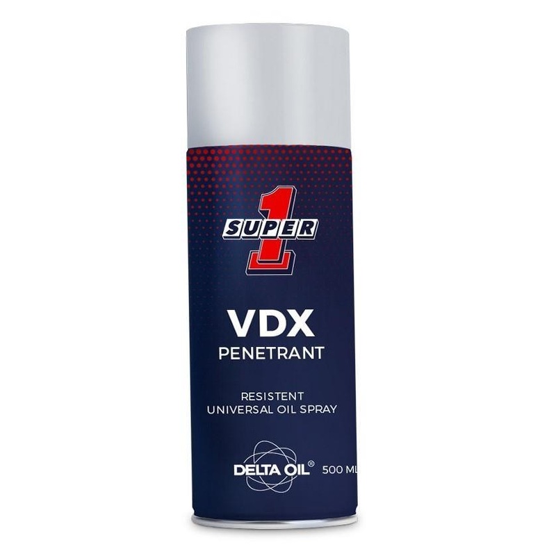Super 1 VDX Penetrant er et fremragende universalt smre- og lsemiddel, somikke tiltrekker seg stv og skitt. Super 1 VDX Penetrant smrer, lser opp rust ogreduserer slitasje og friksjon.