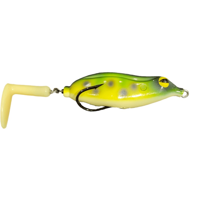 Designed by famed Japanese lure maker and tournament angler, Hidecki Maeda, theTeckel USA Sprinker Frogincites aggressive blow-ups that are in a league-of-their-own. Built around the iconic Teckel hollow-body, the Teckel USA Sprinker Frog combines the weedlessness of a frog with the auditory agitation and splash of a prop bait. Offered in a number of proven colors, the Teckel USA Sprinker Frog blurs the line between prop bait and frog to give anglers a completely new, and incredibly effective hybrid topwater genre.