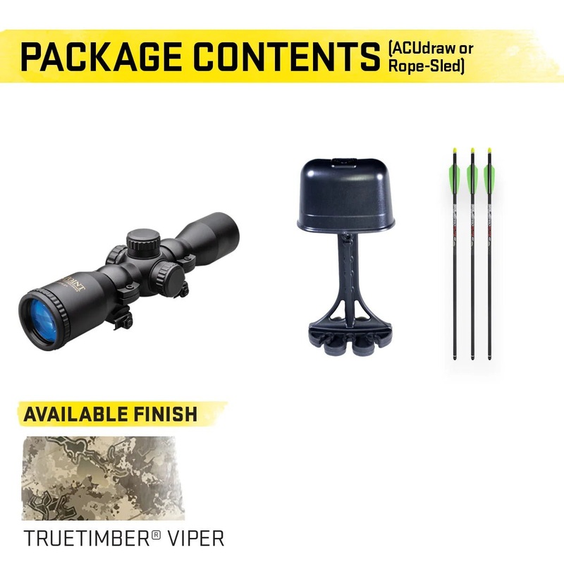 A complete makeover of our all-time best-selling model, the Titan M1 is an incredible 9.5-inches narrower and 30 feet-per-second faster than its legendary predecessor. Powered by VX-5 inverted cams that elongate the power stroke and increase rotation, it delivers lethal accuracy shot-after-shot. Available with or without the legendary ACUdraw cocking device, the cost-effective Titan M1 is the best value on the crossbow market.